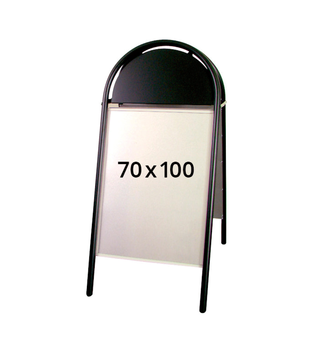 Ramen är tillverkad i 25mm stålrör vilket ger bra stabilitet. Den har frontpanel med anti-reflex samt med magnetisk stängning vilket gör det mycket enkelt att byta budskap.