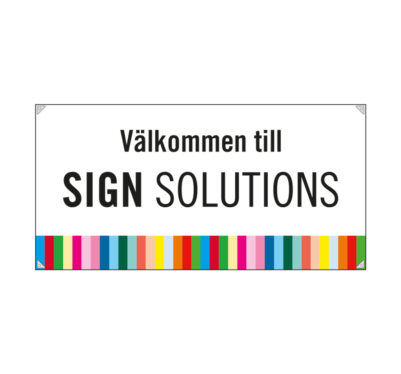 Denna banderoll är tillverkad i 550 g matt, tät banderollväv för en tålig och långlivad lösning. Med 4 trekantsöljetter får du extra hållbarhet eftersom trycket sprids över en större yta än med vanliga runda öljetter.