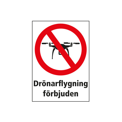 "Drönarflygning förbjuden" gör det klart och tydligt att drönarflygning inte är tillåten, oavsett om det handlar om sekretess, säkerhet eller störningsmoment.
