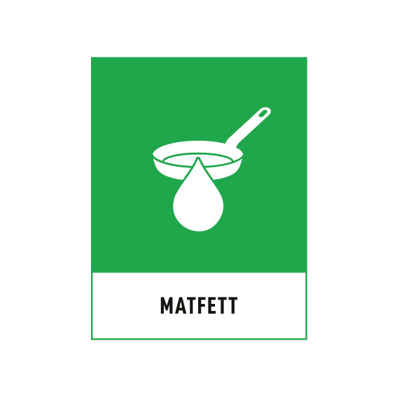 Matfett kan orsaka problem om det hamnar i avloppet, men rätt hantering gör skillnad. Dekalen Matfett visar tydligt var det ska samlas för säker återvinning och miljövänlig behandling. Perfekt för hushåll, restauranger och arbetsplatser som vill minska sitt avfall och skydda miljön. Med tydlig märkning blir sorteringen enkel, trygg och hållbar.