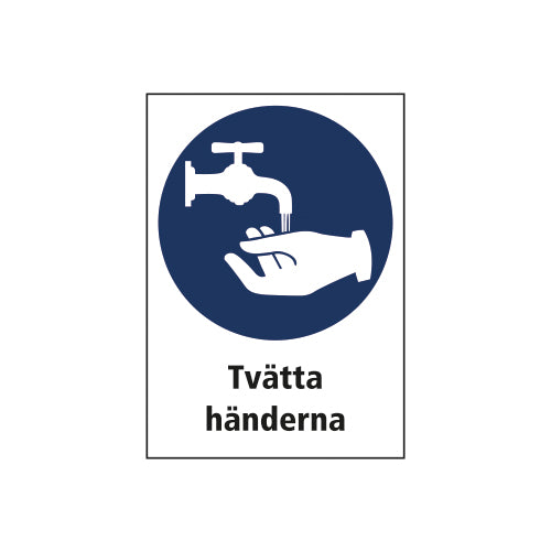 Vår tydliga och tåliga informationsskylt med budskapet "Tvätta händerna" påminner alla på arbetsplatsen om vikten av god handhygien för att förebygga smittspridning och bibehålla en säker miljö. Att tvätta händerna är en av de mest effektiva sätten att minska spridningen av bakterier och virus. En tydlig skylt vid arbetsstationer, kök eller sanitetsområden påminner alla att följa hygienrutinerna och tvätta händerna vid rätt tillfällen för att minska spridning av sjukdomar.