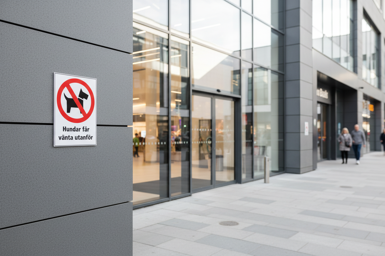 Hundar får vänta utanför skylt